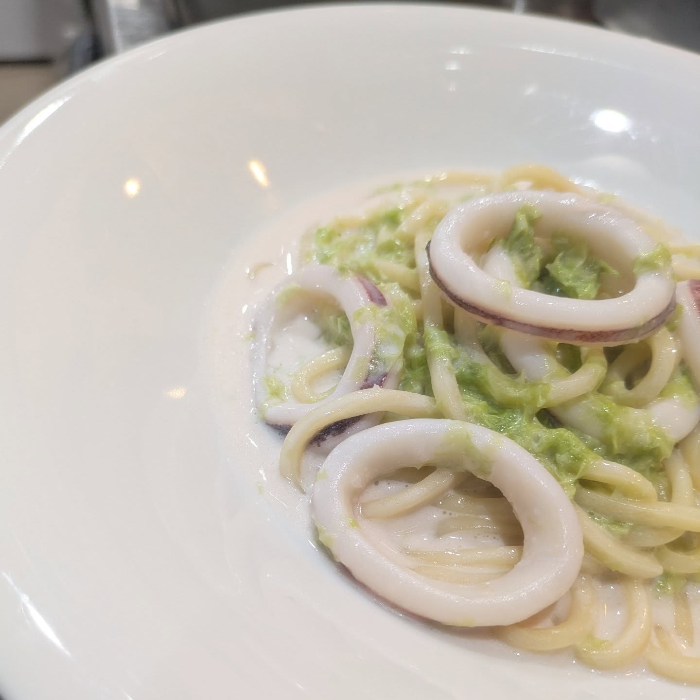 Pannaのスルメイカと生あおさのクリームソースです